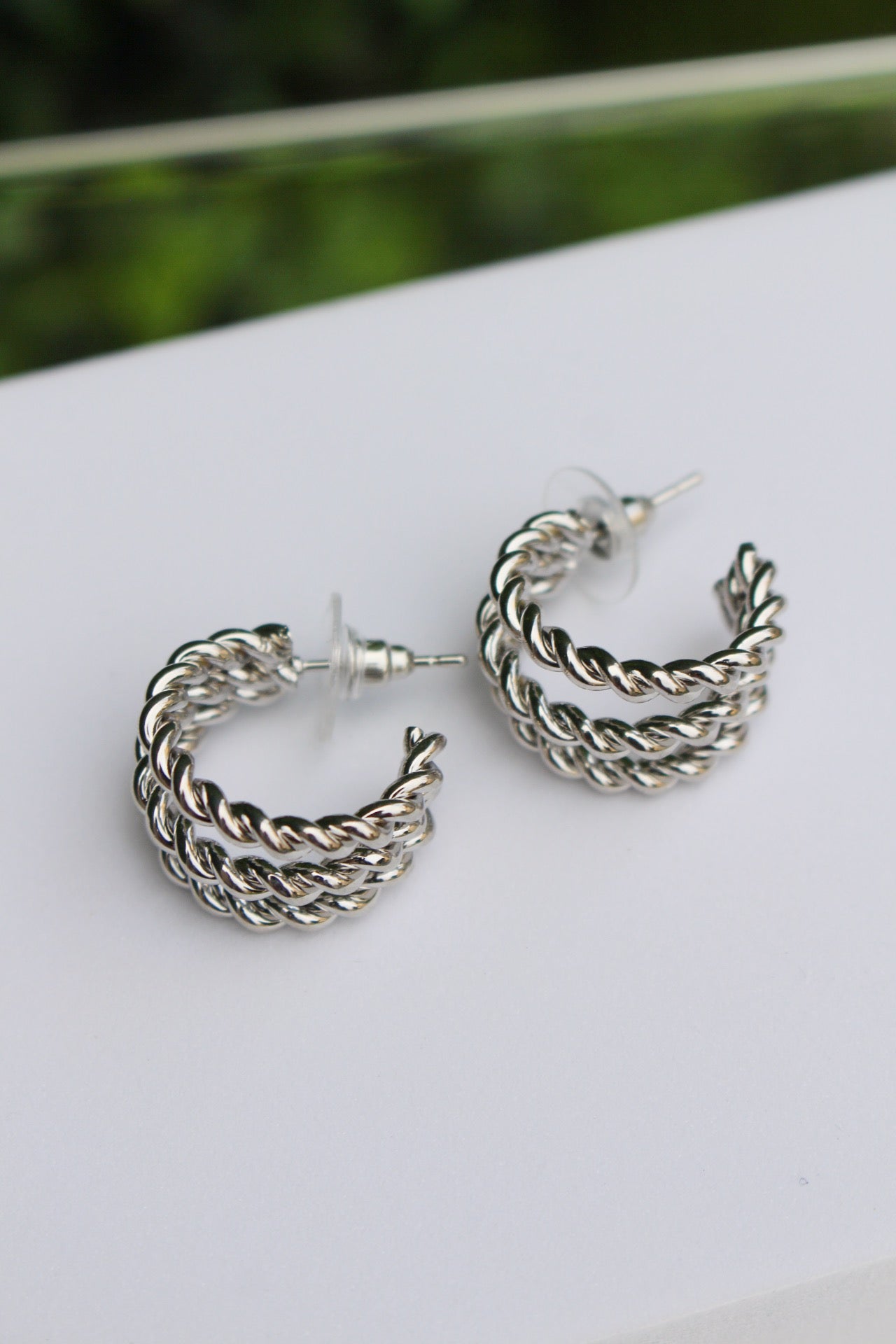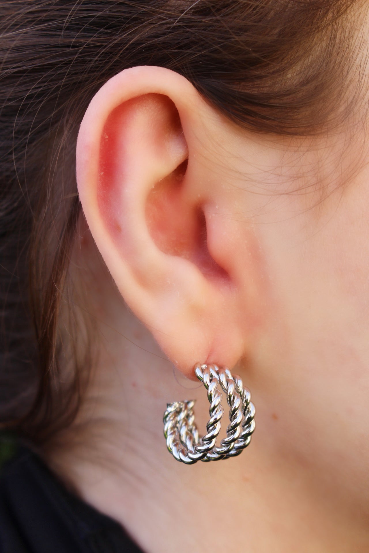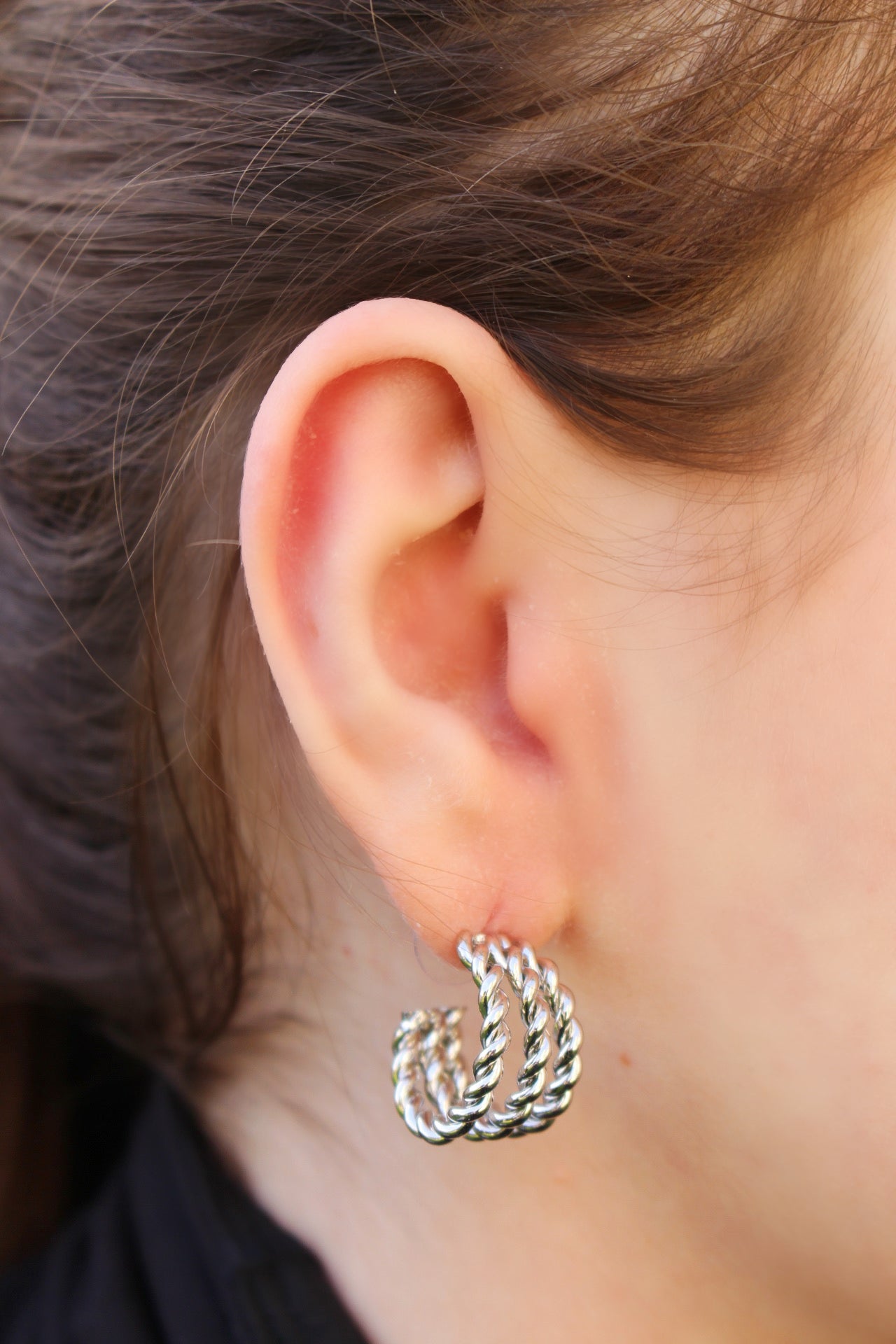 Media Arracada Plateada Triple Líneas